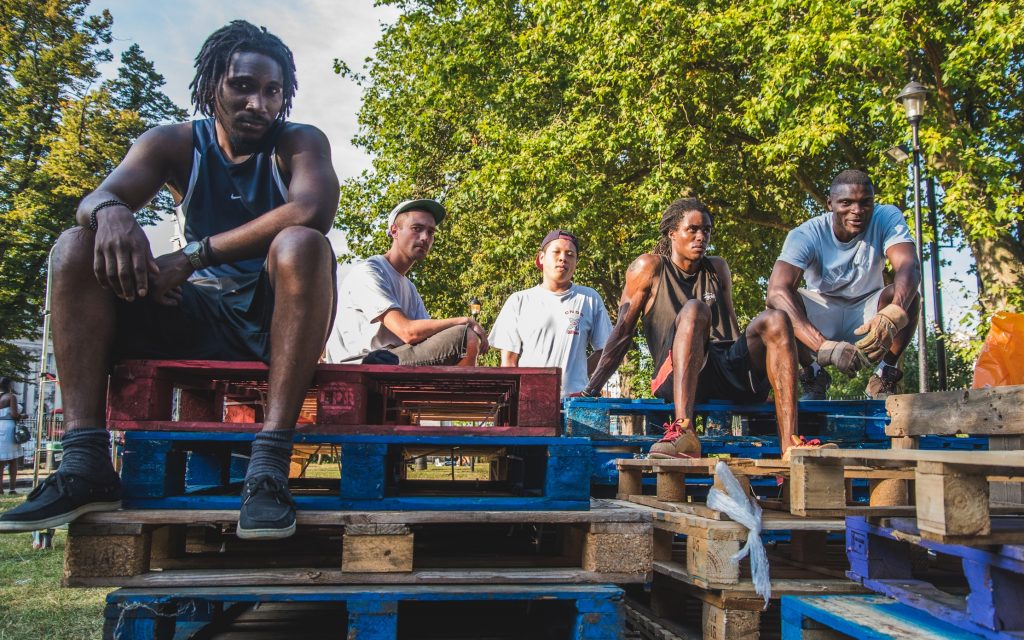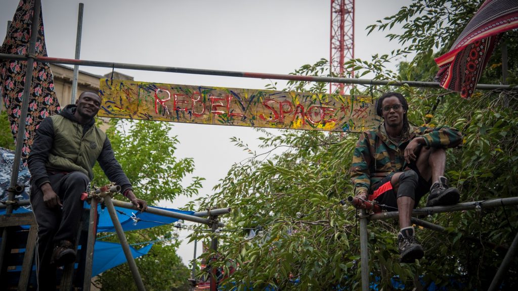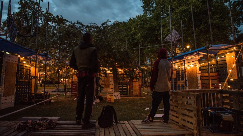 ASS: We sourced pallets from the immediate area, from the market, Tesco, builders yards, and the scaffolding has been loaned to us by a guy called Lee – shout out to Lee Scaffolding – who came through for us. It reflects our level of experience. We couldn’t build the Millennium Dome, you know. But this is a testament to the whole methodology behind scarcity architecture. You have to build and innovate using what’s available to you.
